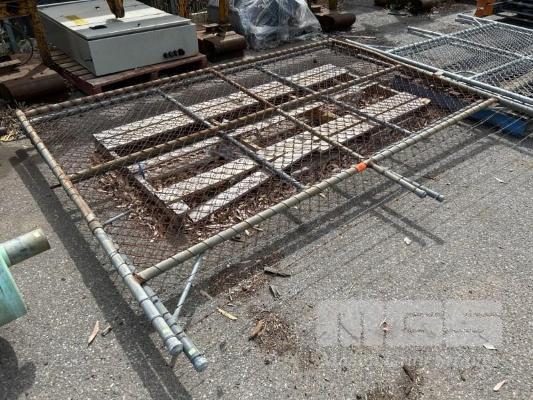 PAIR MATCHING CYCLONE MESH STEEL GATES, GALV STEEL, BARBED WIRE TOPPED 2950 x 2175mm (H)