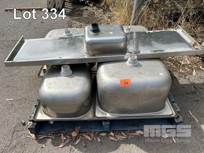 STAINLESS STEEL SINKS, 2 x TWIN BOWL & 1 x SINGLE BOWL 1 x PALLET