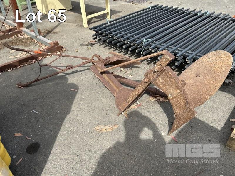 2 x PLOUGH ATTACHMENTS, VINTAGE, 1 x HORSE DRAWER & 1 x TRACTOR MOUNT