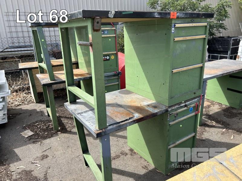 2 x WORKSHOP BENCHES, 1400 x 800 x 890mm (H) STEEL TOP, 3 DRAWER