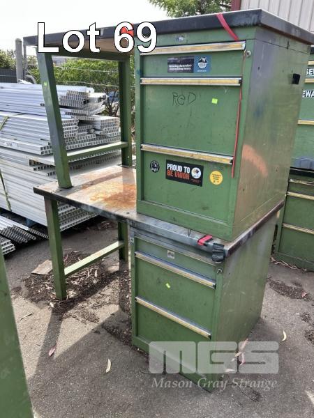 2 x WORKSHOP BENCHES, 1400 x 800 x 890mm (H) STEEL TOP, 3 DRAWER