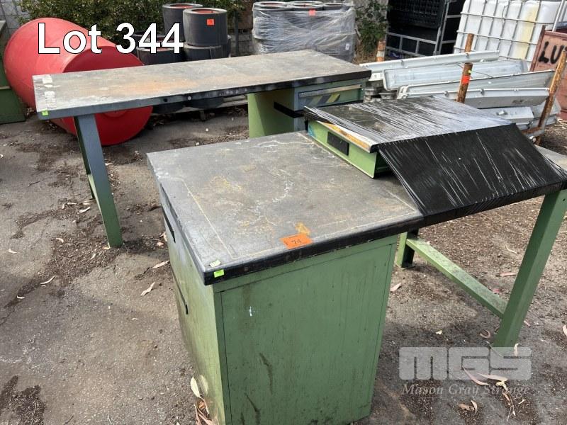 2 x WORKSHOP BENCHES, 2000 x 800 x 900mm (H) & 1420 x 800 x 900mm (H) STEEL, 3 DRAWER