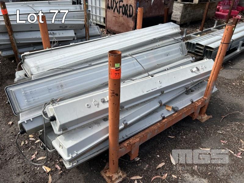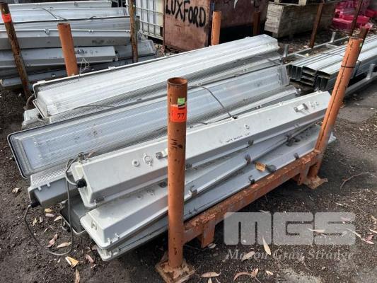 20 (APPROX) x FLURO LIGHT FIXTURES, WEATHERPROOF, TWIN BATTEN, 240V, 1600mm (L) 1 x STILLAGE