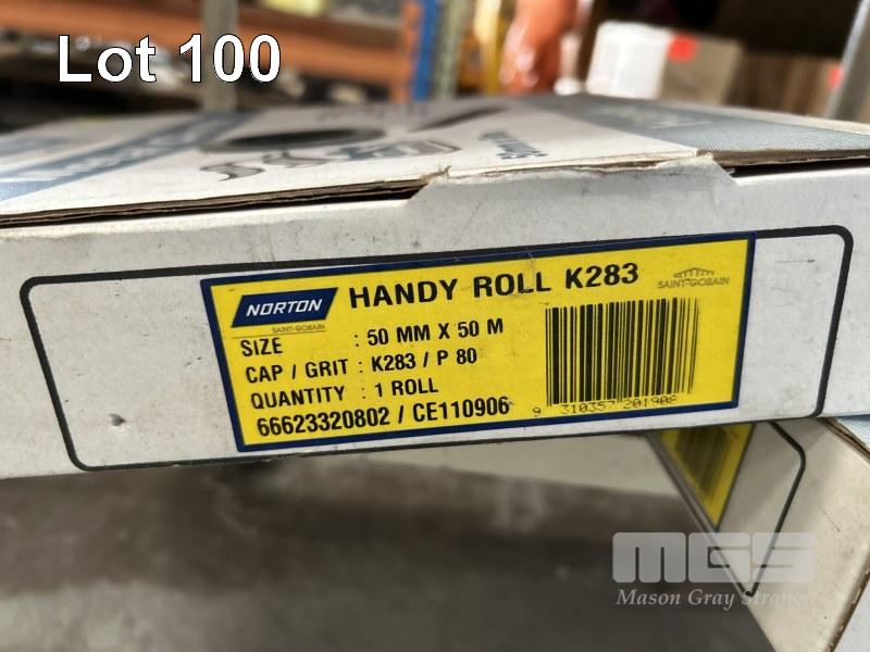 2 x ROLLS, METAL CLOTH, SANDPAPER ROLLS, NORTON, K283 GRIT P80 50mm x 50m NEW