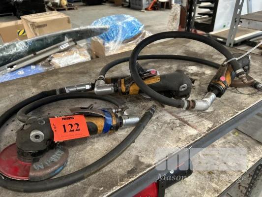 3 PNEUMATIC GRINDERS, 125mm WITH HOSES & FITTINGS