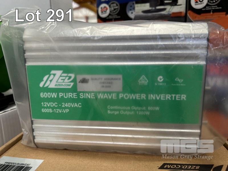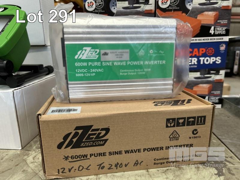 4 x LED WORK LIGHTS, NIGHT OWL RECHARGEABLE, 4 x BOXES LEVELLER TOPS, LYNXCAP & POWER INVERTER 600w, 8ZED, PURE SINE WAVE, 12V DC TO 240V AC AS NEW