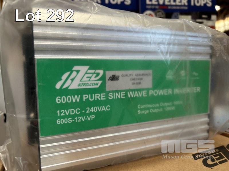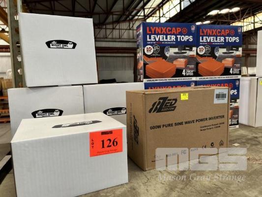 4 x LED WORK LIGHTS, NIGHT OWL RECHARGEABLE, 4 x BOXES LEVELLER TOPS, LYNXCAP & POWER INVERTER 600w, 8ZED, PURE SINE WAVE, 12V DC TO 240V AC AS NEW