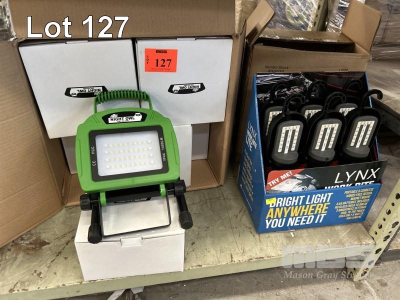 8 x LED WORK LIGHTS, NIGHT OWL, RECHARGEABLE & 6 x LED WORK LIGHTS LYNX, HAND HELD & MAGNETIC BASE, RECHARGEABLE, AS NEW