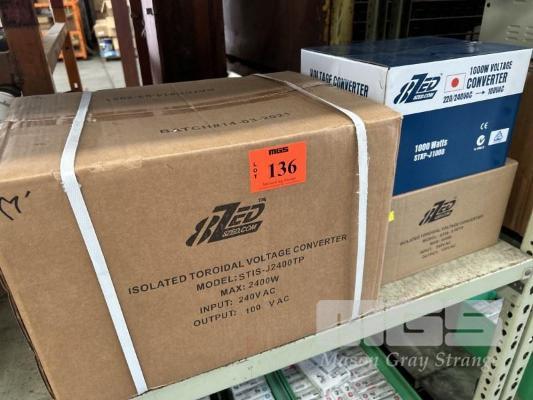 POWER CONVERTERS, TOROIDAL 2400w, 240VAC TO 100VAC 1000w, 240VAC TO 100VAC 600w, 240VAC TO 120VAC AS NEW