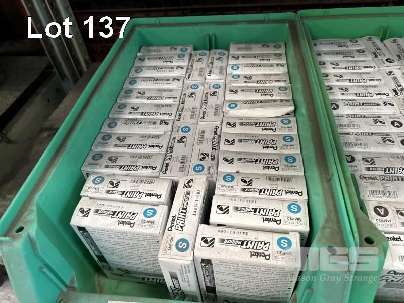 PAINT MARKER PENS, PENTEL MEDIUM BULLET POINT COLOURS INCLUDE, BLACK, BLUE, PURPLE, ETC 4 x TUBS AS NEW