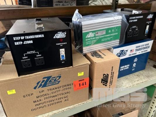 POWER INVERTER, 8ZED, PURE SINE WAVE 600w, 120VDC TO 120VAC & 2 x TRANSFORMERS 2000w, 120VAC TO 240VAC, 1000w, 240VAC TO 120VAC AS NEW