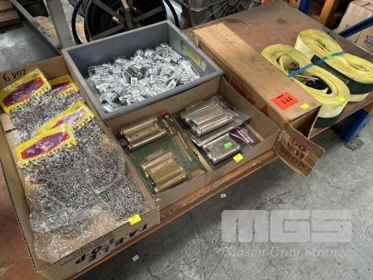 2 x HEAVY DUTY LOAD BINDING STRAPS, 100mm, HINGES, SAFETY TRIANGLES, MULTI PURPOSE KEY RINGS, ETC