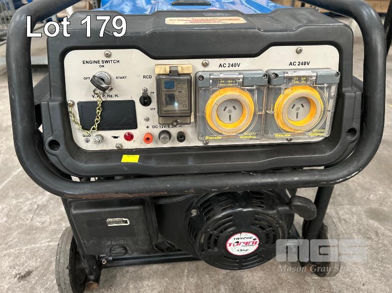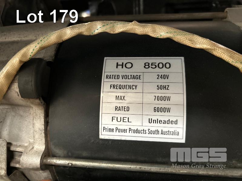 GENERATOR, PRIME POWER MOD: HO8500 OUTPUT: 7000w POWERED BY TURINI 15HP PETROL ENGINE 2 x 240V OUTLETS, KEY & PULL START, MOBILE