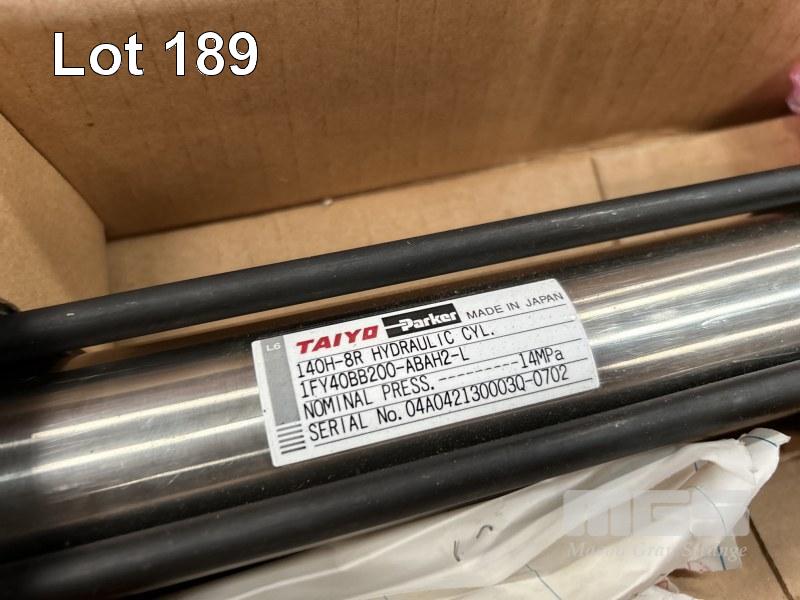 2 x HYDRAULIC RAMS, PARKER TAIYO 140H-8R, IFY50BB200 14MPA AS NEW