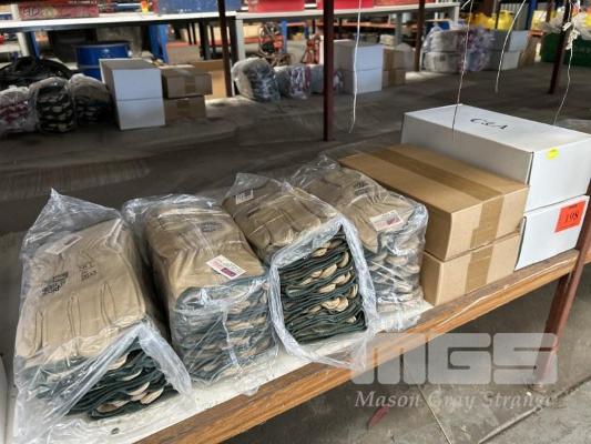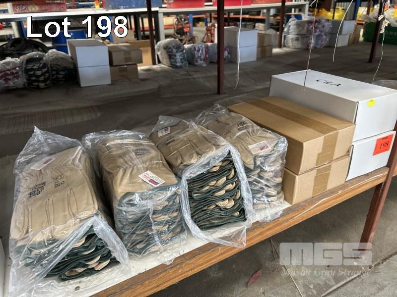 48 x PAIRS GLOVES, RIGGA MATE, LEATHER SIZE: M SAFETY GLASSES, C& A TINTED, 2 x BOXES (12/BOX), GLOVE BELT CLIPS, 2 x BOXES AS NEW