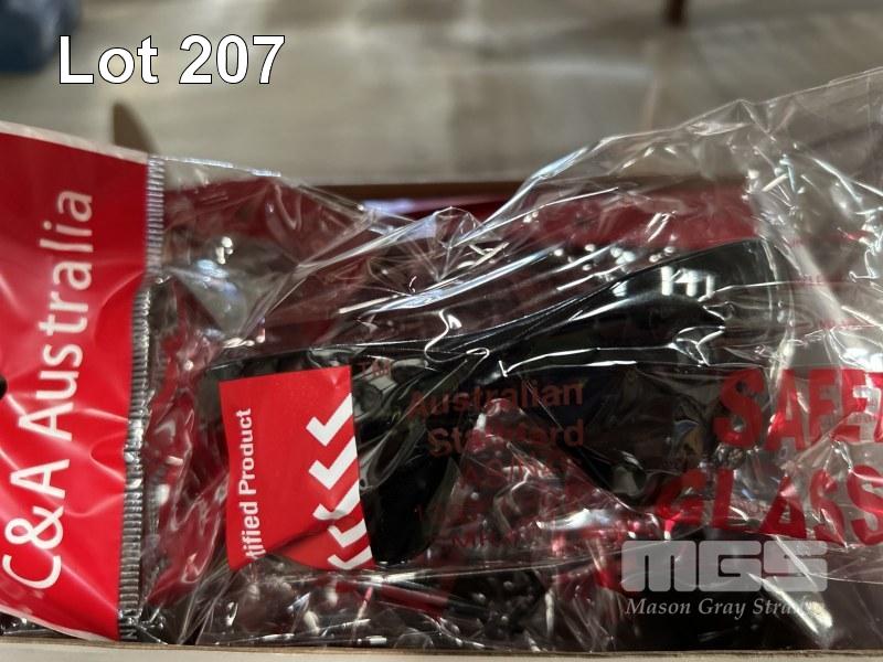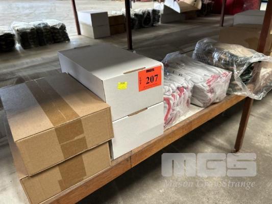 24 x PAIRS GLOVES, FRONTIER, LEATHER SUEDE SWAGGY SIZE: S 12 x PAIRS RIGGA MATE, LEATHER SIZE: M SAFETY GLASSES, C&A TINTED, 2 x BOXES (12/BOX) & GLOVE BELT CLIPS, 2 x BOXES AS NEW