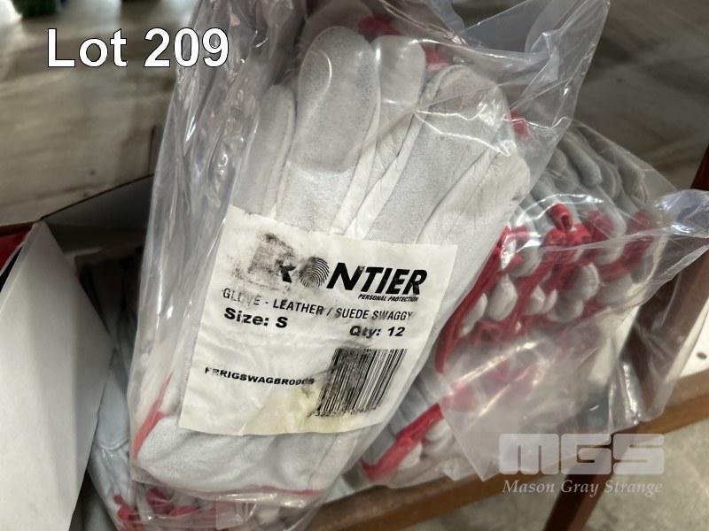 24 x PAIRS GLOVES, FRONTIER, LEATHER SUEDE SWAGGY SIZE: S 24 x PAIRS RIGGA MATE, LEATHER SIZE: M SAFETY GLASSES, C&A TINTED, 2 x BOXES (12/BOX) & GLOVE BELT CLIPS, 2 x BOXES AS NEW