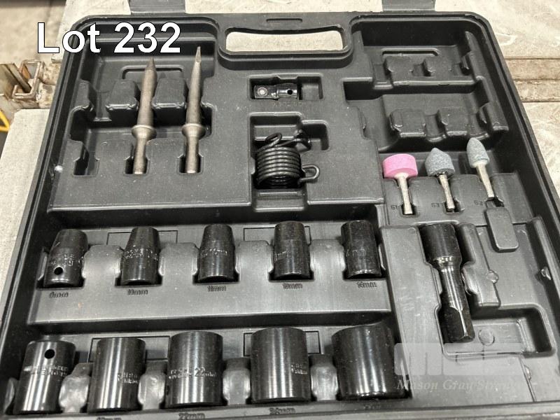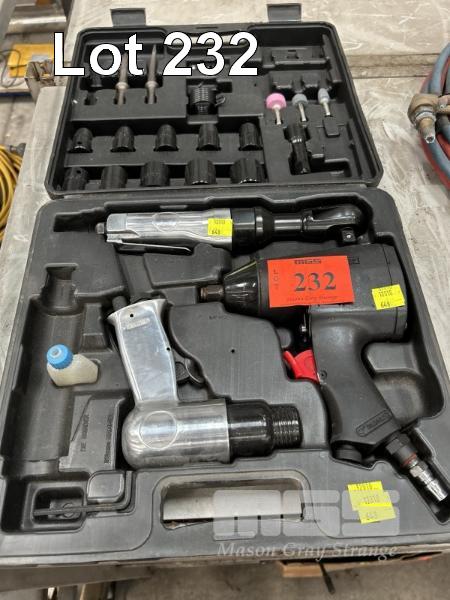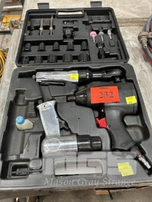 PNEUMATIC TOOL SET, BLACK RIDGE INCLUDING IMPACT DRIVER, POWER CHISEL, RIGHT ANGLES RATCHET & FITTINGS INC CARRY CASE