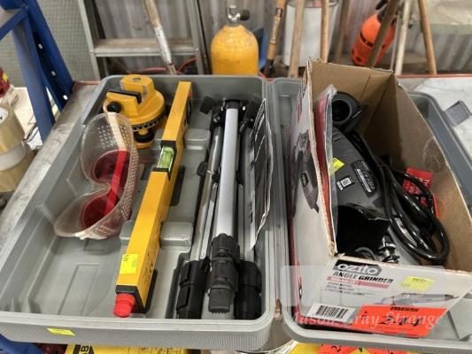 LASER LEVEL KIT & ANGEL GRINDER, OZITO, 100mm 240V, AS NEW