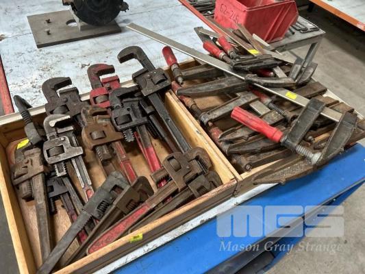 14 x ASSORTED PIPE WRENCHES, 200 TO 400mm & 12 x SLIDING F CLAMPS, 350 TO 700mm