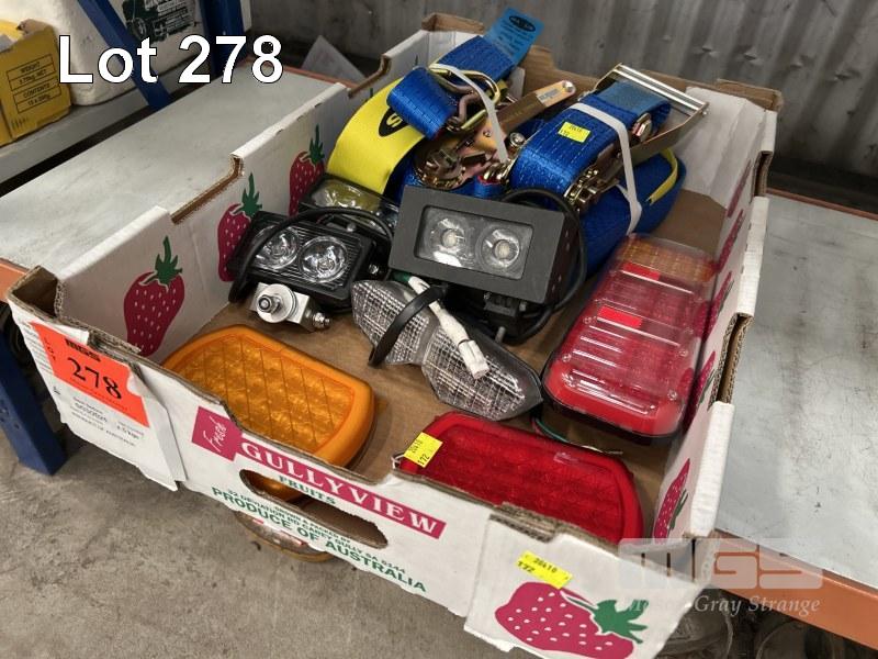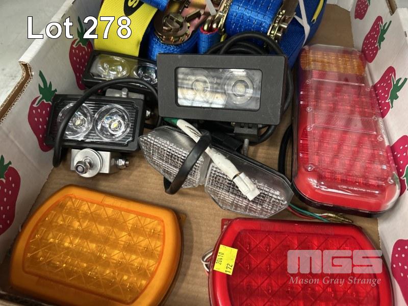 ASSORTED LED VEHICLE LIGHTS, 12/24V & 2 x MAXUS RATCHET STRAPS, 2500kg x 9m (L)