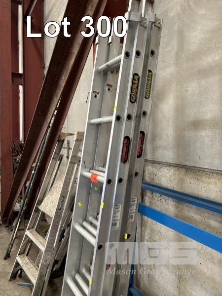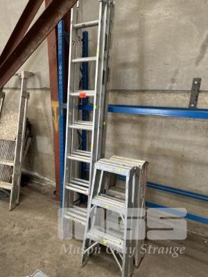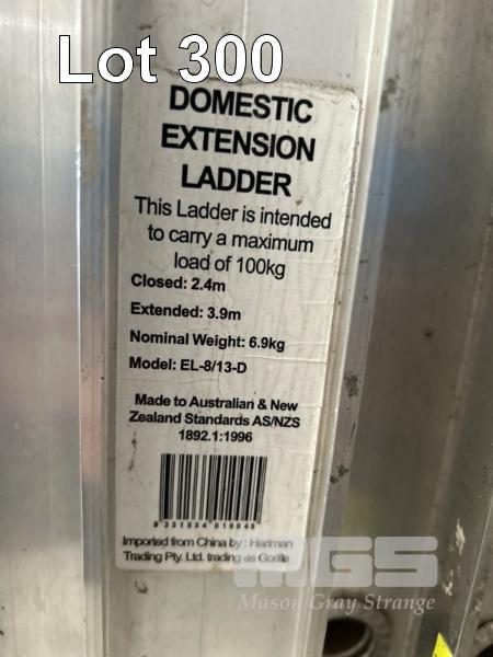 2 x EXTENSIONLADDERS, ALLOY, GORILLA, 2.4 TO 3.9m, 100kg MAX LOAD & 2 x STEP LADDERS, ALLOY INDUSTRIAL, 1.2m, 120kg