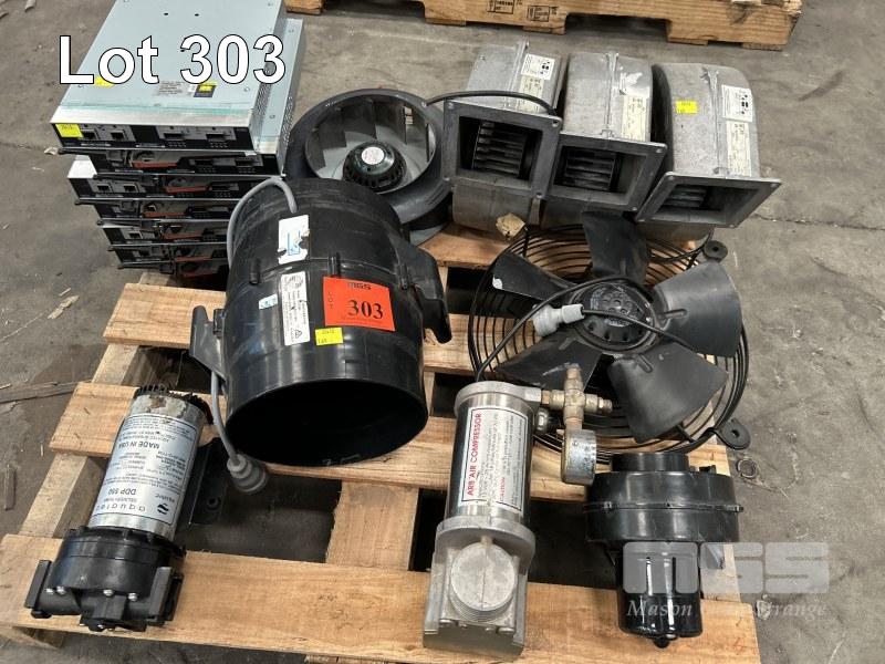 ASSORTED EXTRACTION FANS, 240V & 12V DC, AIR COMPRESSOR, 12V, FLUID PUMP, 24V DC, ETC 1 x PALLET