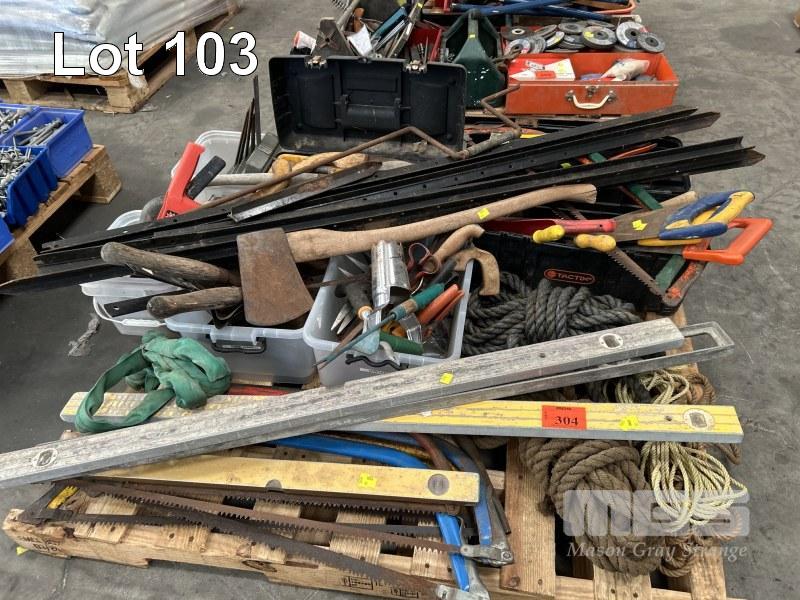 HAND TOOLS & GARDEN TOOLS, SPIRIT LEVELS SAWS, ROPE, ACES & STAR DROPPERS 1 x PALLET