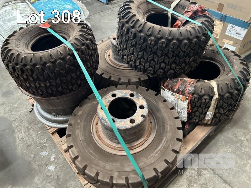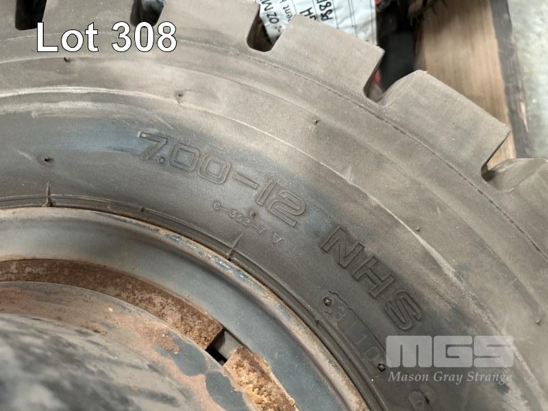 2 x FORKLIFT TYRES & RIMS, 7.00-12 NHS & 3 x ATV TYRES INCLUDING HD FIELD TRAX AT 22.5x10.0-8 & AT25x13-9, NEW 1 x PALLET