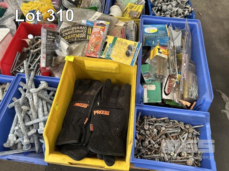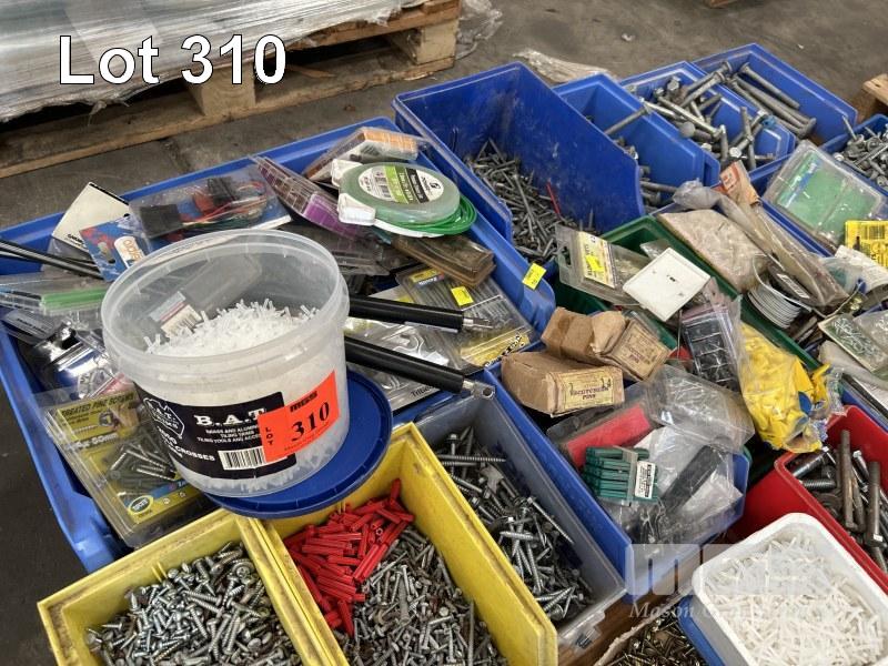 ASSORTED HARDWARE INCLUDING PARTS DRAWERS INCLUDING SCREWS, NUTS & BOLTS, TAPE, WALL PLUGS, NAILS & GAS STRUTS, ETC 1 x PALLET