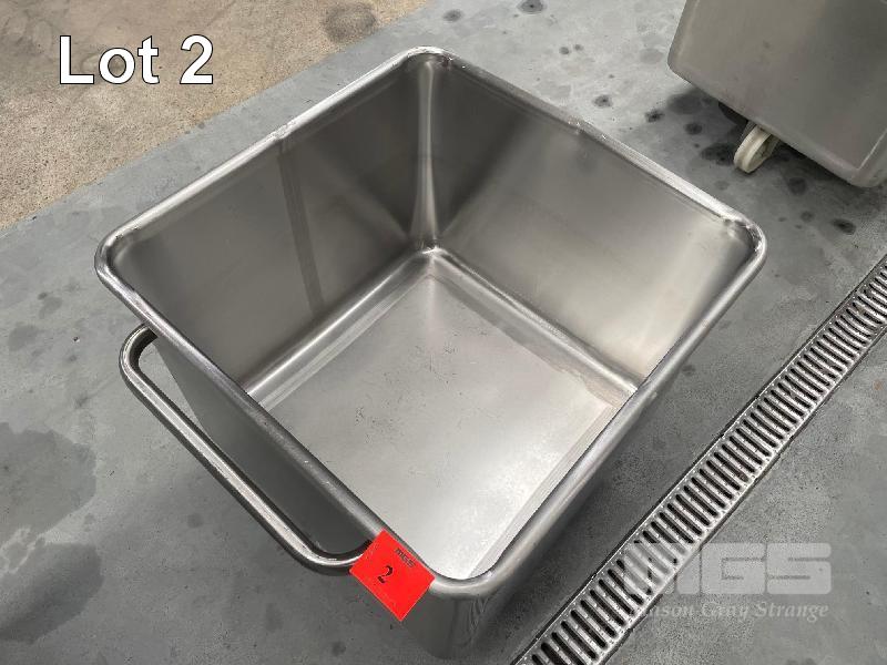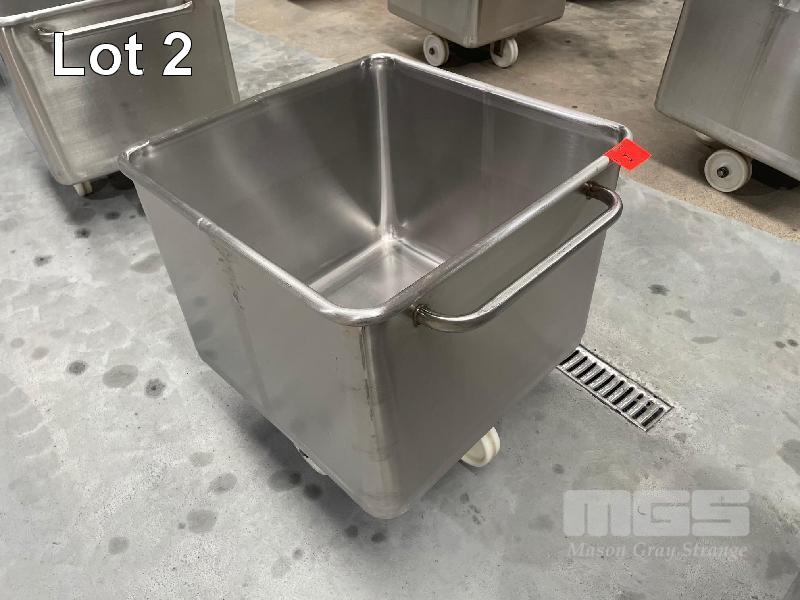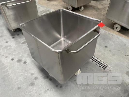 FOOD GRADE STAINLESS STEEL EURO TUBS, MOBILE, 200L CAP, ROLLED EDGES, HEAVY DUTY SOLID WHEELS, INTERNAL DIMESNIONS: 620 x 620 x 500mm
