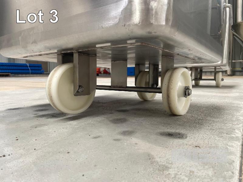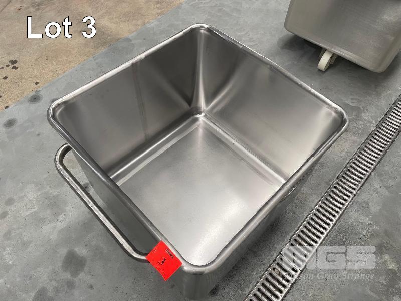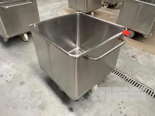 FOOD GRADE STAINLESS STEEL EURO TUBS, MOBILE, 200L CAP, ROLLED EDGES, HEAVY DUTY SOLID WHEELS, INTERNAL DIMESNIONS: 620 x 620 x 500mm