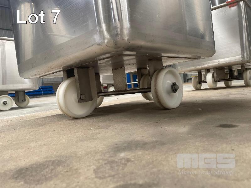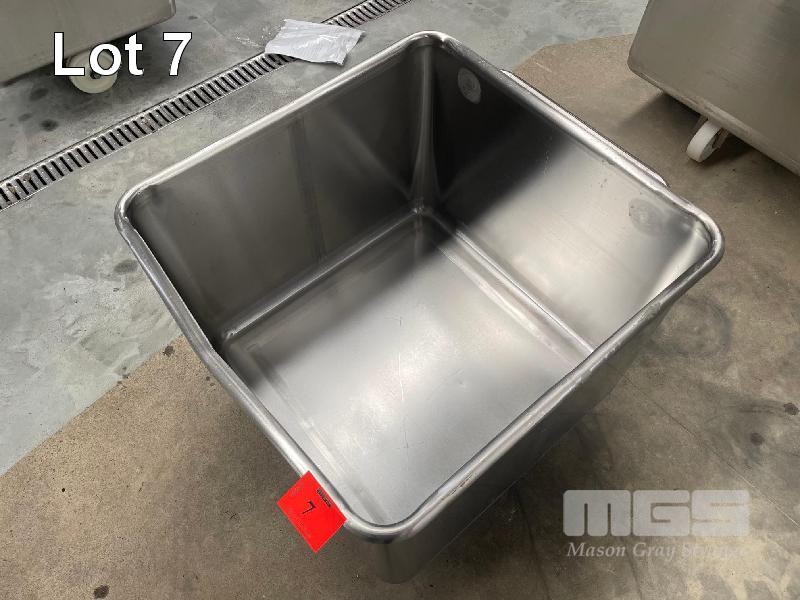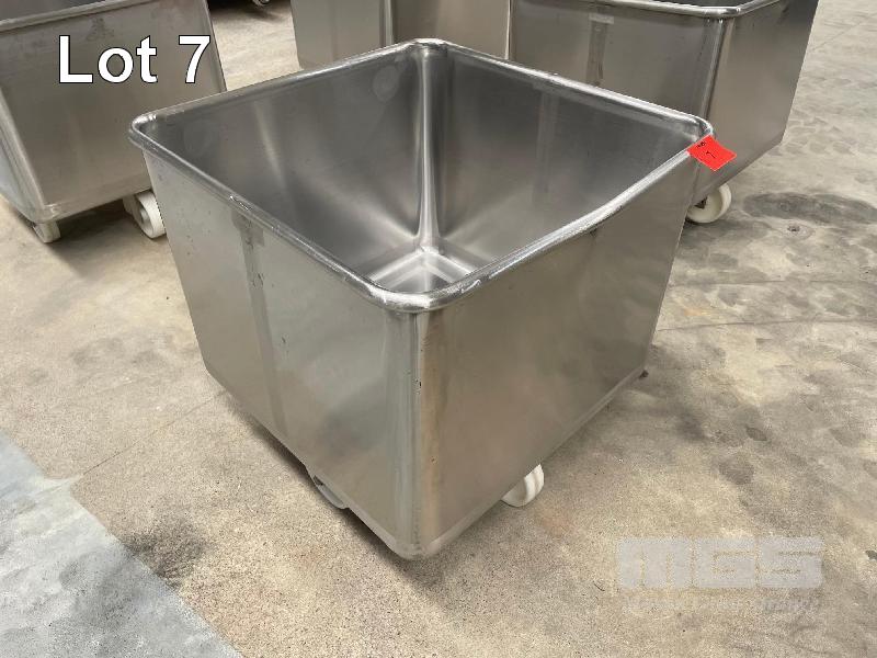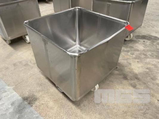 FOOD GRADE STAINLESS STEEL EURO TUBS, MOBILE, 200L CAP, ROLLED EDGES, HEAVY DUTY SOLID WHEELS, INTERNAL DIMESNIONS: 620 x 620 x 500mm
