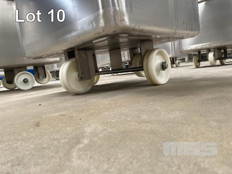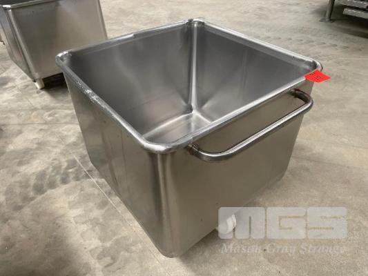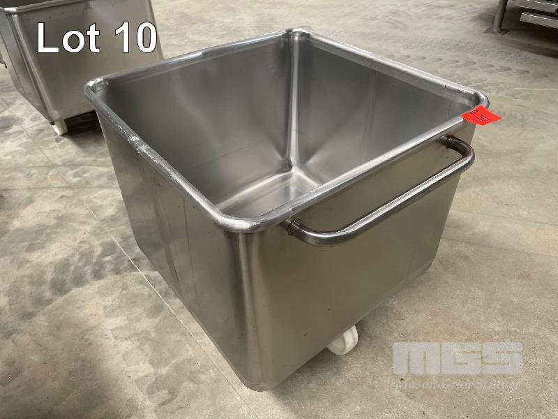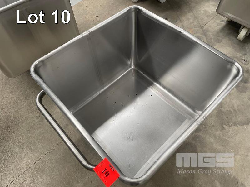 FOOD GRADE STAINLESS STEEL EURO TUBS, MOBILE, 200L CAP, ROLLED EDGES, HEAVY DUTY SOLID WHEELS, INTERNAL DIMESNIONS: 620 x 620 x 500mm