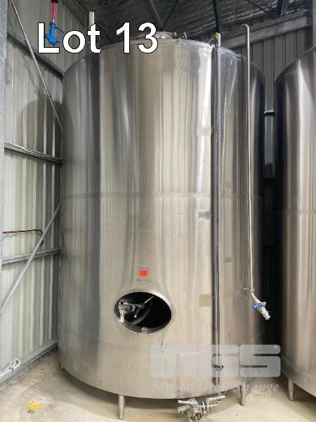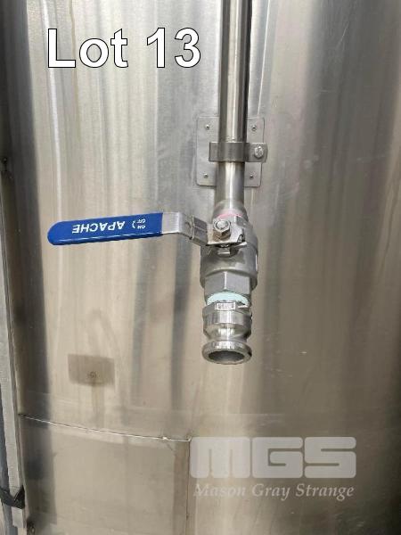 13,600L FRIGRITE STAINLESS STEEL MILK TANK, SIDE & TOP MOUNT ACCESS HATCHES, FLAT BOTTOM SLOPING BASE WITH BUTTERFLY VALVE, FILL GAUGE, INSULATED & JACKETED APPROX 3.5m (H)