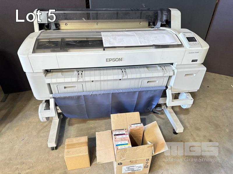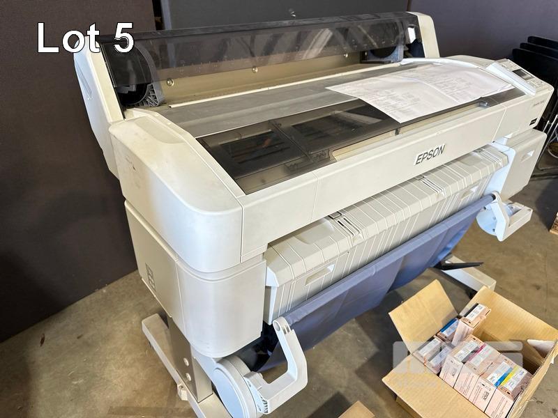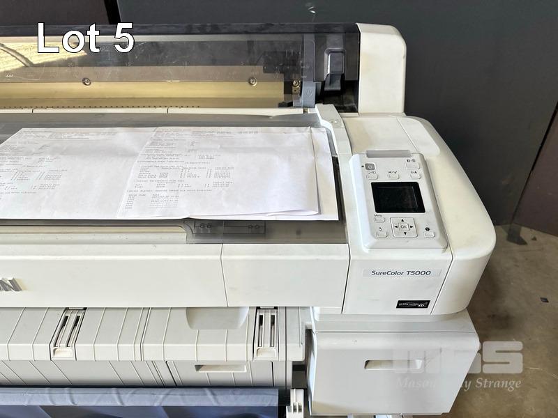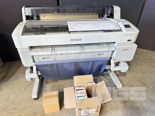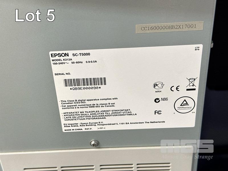 EPSON SURECOLOR T5000 36" WIDE FORMAT PRINTER, 1,275 M2 MEDIA USAGE, 2,561 PAGES (TEST PAGE ATTACHED) WITH SPARE INK CARTRIDGES (EXPIRED) & SPARE PAPER ROLL SPINDLE S/N:QB9E000090