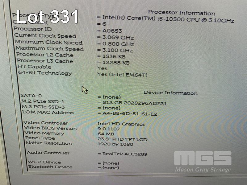 ALL-IN-ONE PC, DELL OPTIPLEX 7480, CORE i5 10500 (10TH GEN) @ 3.1GHz, 8GB DDR4 RAM, 512GB NVMe M.2 SSD, INBUILT 23.8" FHD WIDESCREEN (1920x1080), INTEL HD VIDEO, WEBCAM, 5 x USB, 1 x USB-C, WINDOWS 11 HOME INSTALLED, KEYBOARD & MOUSE S/N:4XM6X63