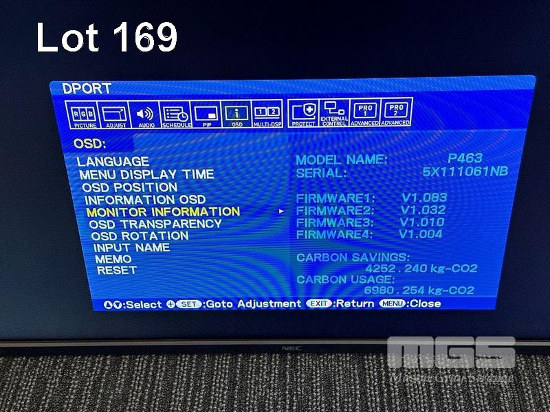 MONITOR, NEC MULTISYNC P463 46" COMMERCIAL LCD DISPLAY (NO REMOTE, NO STAND) S/N:5X111061NB