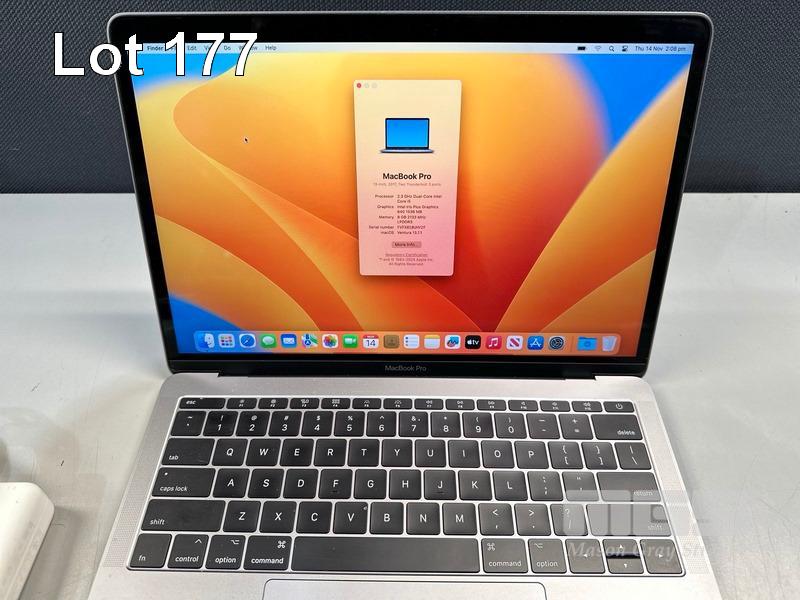 LAPTOP, APPLE MACBOOK PRO (A1708), CORE i5 7360U (7TH GEN) @ 2.3GHz, 8GB DDR3 RAM, 512GB SSD, 13.3" RETINA DISPLAY (2560x1600), INTEL IRIS PLUS GRAPHICS 640, Wi-Fi, BLUETOOTH, MAC OS 13 INSTALLED & USB-C POWER SUPPLY S/N:FVFX810UHV2F