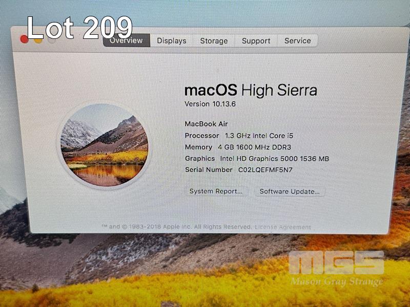LAPTOP, APPLE MACBOOK AIR (A1465), CORE i5 4250U (4TH GEN) @ 1.3GHz, 4GB DDR3 RAM, 128GB SSD, 11.6" DISPLAY (1366x768), INTEL HD GRAPHICS 5000, Wi-Fi, BLUETOOTH, MAC OS 10.13 INSTALLED & POWER SUPPLY S/N:C02LQEFMF5N7