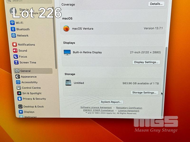 APPLE iMAC (A1419), CORE i5 7500 (7TH GEN) @ 3.4GHz, 16GB DDR4 RAM, 1TB SSD, BUILT-IN 27" RETINA 5K DISPLAY (5120x2880), 4GB RADEON PRO 570 VIDEO, Wi-Fi, BLUETOOTH, MAC OS 13 INSTALLED (NO KEYBOARD, NO MOUSE) S/N:C02XT02DJ1GN