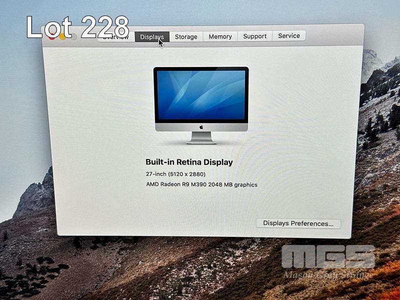 APPLE iMAC (A1419), CORE i5 6500 (6TH GEN) @ 3.2GHz, 8GB DDR3 RAM, 1TB FUSION DRIVE, BUILT-IN 27" RETINA DISPLAY (5120x2880), 2GB AMD RADEON R9 M390 VIDEO, Wi-Fi, BLUETOOTH, MAC OS 10.13 INSTALLED (NO KEYBOARD, NO MOUSE) S/N:C02SQ1E4GG7L
