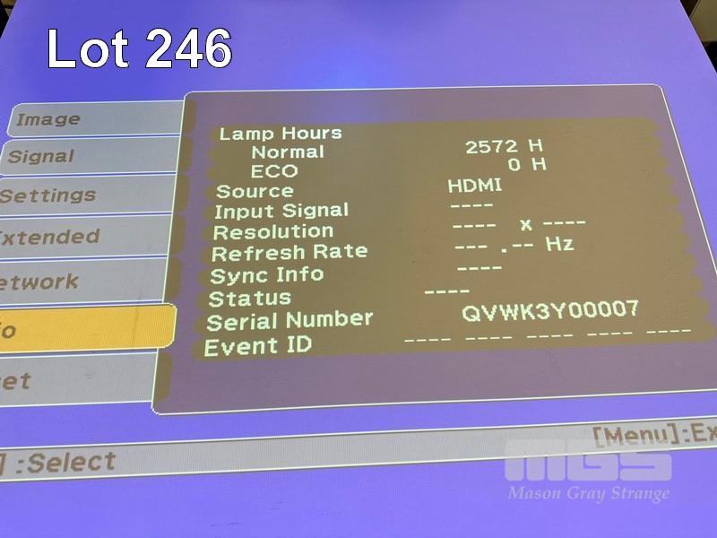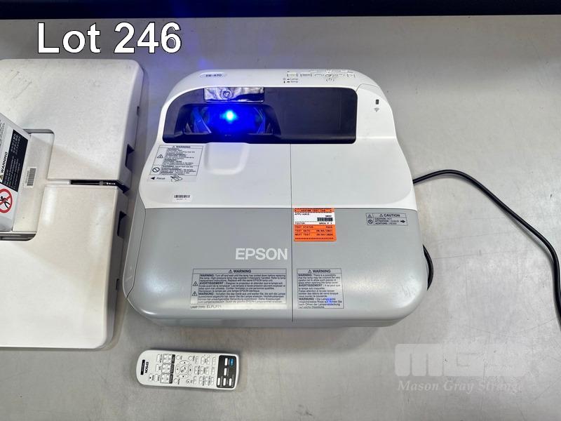 PROJECTOR, EPSON EB-470 ULTRA SHORT THROW 3LCD, 2,600 LUMENS, 2,572 NORMAL HOURS SHOWING WITH REMOTE & BRACKET S/N:QVWK3Y00007