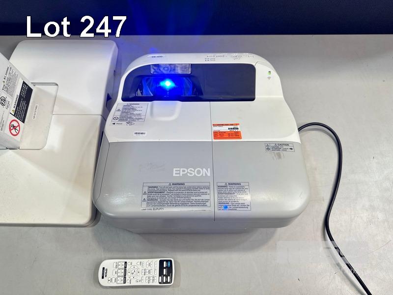 PROJECTOR, EPSON EB-470 ULTRA SHORT THROW 3LCD, 2,600 LUMENS, 2,819 NORMAL HOURS SHOWING WITH REMOTE & BRACKET S/N:QVWK4100138