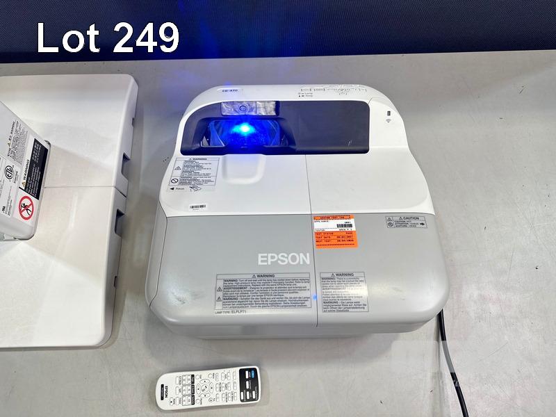 PROJECTOR, EPSON EB-470 ULTRA SHORT THROW 3LCD, 2,600 LUMENS, 2,937 NORMAL HOURS SHOWING WITH REMOTE & BRACKET (NOTE: MESSAGE TIME TO REPLACE LAMP) S/N:QVWK4100055