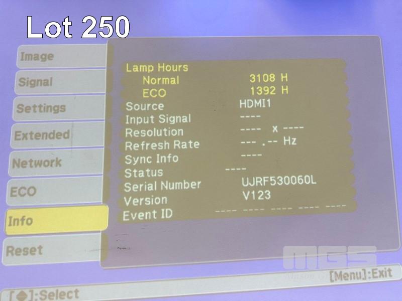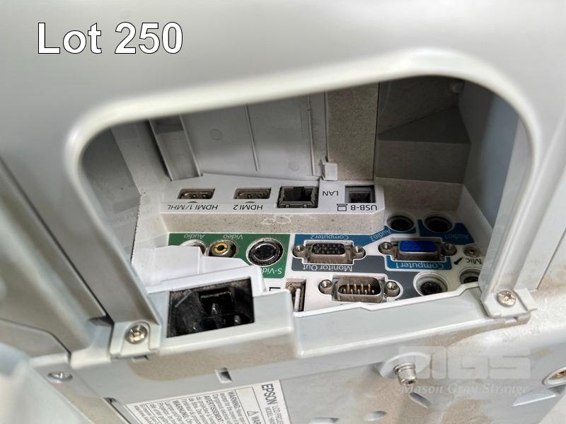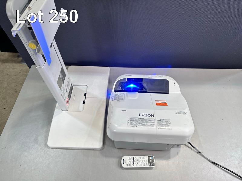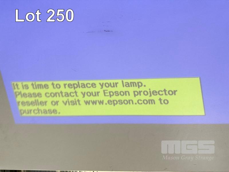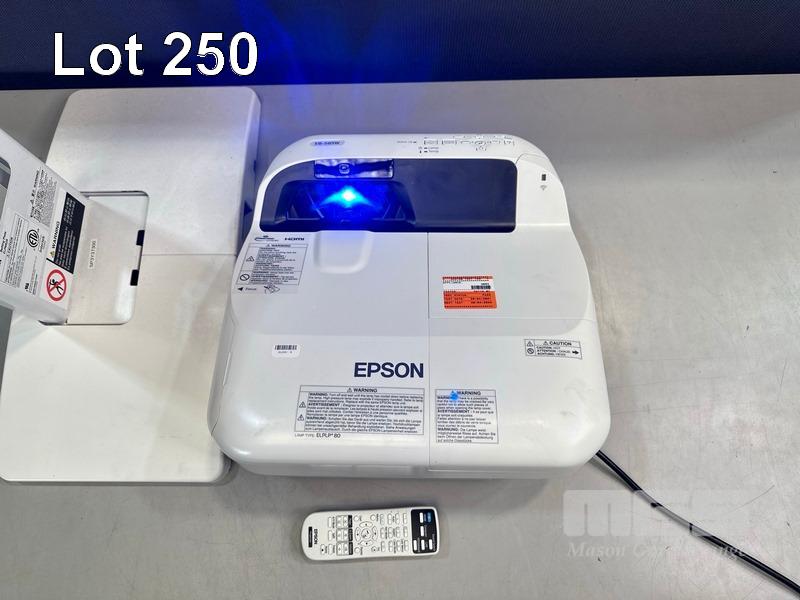 PROJECTOR, EPSON EB-585W ULTRA SHORT THROW 3LCD, 3,300 LUMENS, 3,108 NORMAL & 1,392 ECO HOURS SHOWING WITH REMOTE & BRACKET (NOTE: MESSAGE TIME TO REPLACE LAMP) S/N:UJRF530060L