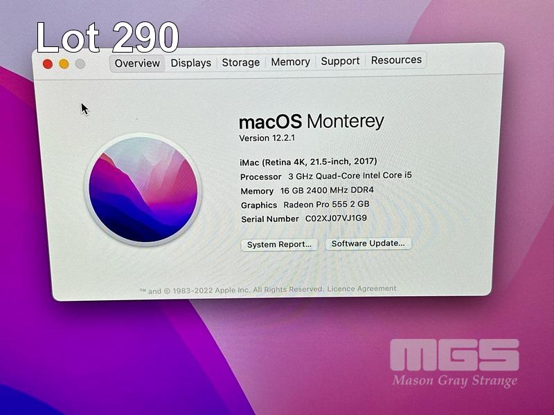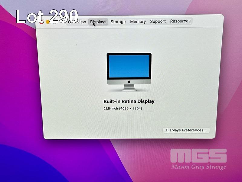 APPLE iMAC (A1418), CORE i5 7400 (7TH GEN) @ 3GHz, 16GB DDR4 RAM, 1TB FUSION DRIVE, BUILT-IN 21.5" RETINA DISPLAY (4096x2304), 2GB RADEON PRO 555 VIDEO, Wi-Fi, BLUETOOTH, MAC OS 12 INSTALLED (NO KEYBOARD, NO MOUSE) S/N:C02XJ07VJ1G9