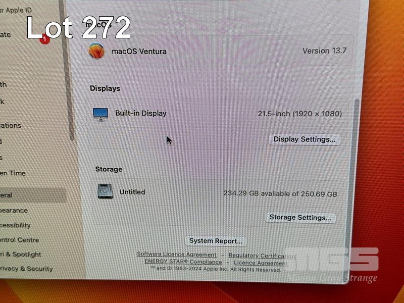 APPLE iMAC (A1418), CORE i5 7360U (7TH GEN) @ 2.3GHz, 16GB DDR4 RAM, 256GB SSD, BUILT-IN 21.5" DISPLAY (1920x1080), INTEL IRIS PLUS GRAPHICS 640, Wi-Fi, BLUETOOTH, MAC OS 13 INSTALLED (NO KEYBOARD, NO MOUSE) S/N:C02VN0FJH7VF