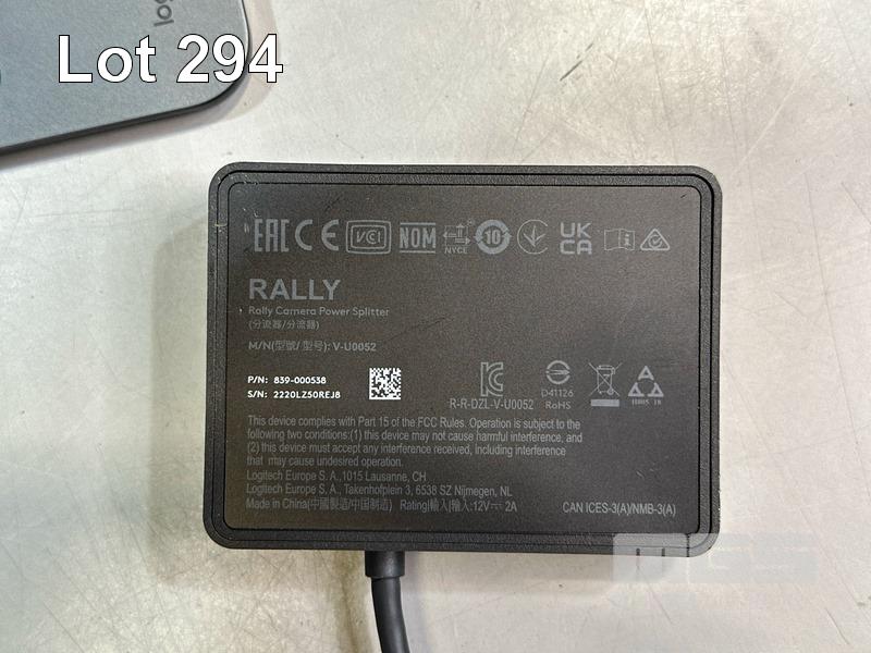 LOGITECH RALLY ULTRA HD PTZ CAMERA, MODEL V-R0010 WITH REMOTE, RALLY CAMERA POWER SPLITTER, POWER SUPPLY & USB-C CABLE S/N:1952LZ54JVU8