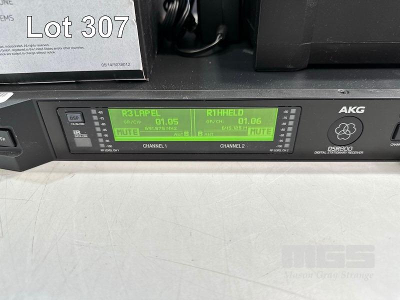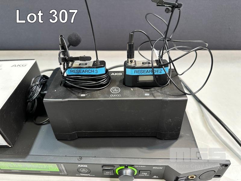 AKG DSR800 DIGITAL WIRELESS STATIONARY RECEIVER WITH 2 x AKG DPT800 BODYPACK TRANSMITTERS, 2 x LAPEL MICROPHONES, 1 x AKG CU800 CHARGING UNIT, 1 x POWER SUPPLY, 1 x AKG CBL31WLS BOUNDARY MICROPHONE & 1 x AKG CBL410PCC CONFERENCE MICROPHONE S/N:VT3867007333